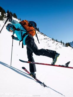 markers toppmoderne ytelsesstiftbinding med din-innstillinger på opptil 12. kingpin m-werks 12 har en karbonforsterket hæl og veier kun 655 g inkludert brems. den tilbyr det ultimate innen opp- og nedoverbakke ytelse takket være funksjoner som en xxl kraftsender og ergonomisk formet klatrehjelp. en veldig stiv, tilsvarende karbonforsterket front med et isi-tåstykke gjør bindingen lettere å trå inn i, ettersom et bredt fotavtrykk med integrert stopp automatisk posisjonerer og justerer støvelen. kinematisk optimaliserte stiftspaker lar stiftene låses med et lett trykk.
