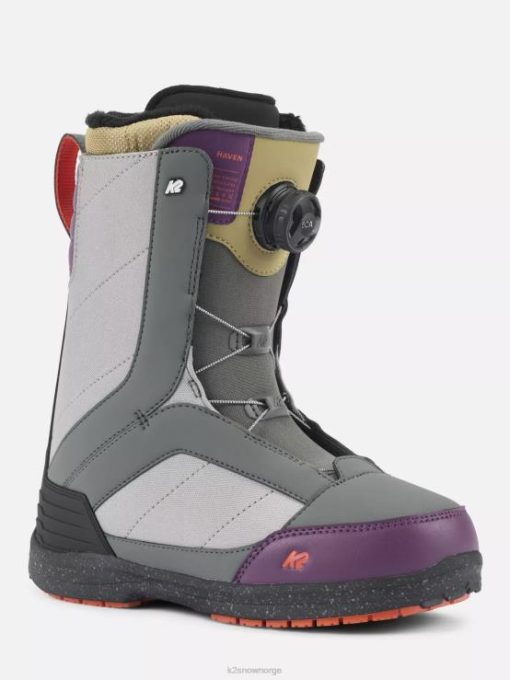 en langvarig favoritt blant feriestedansatte og fremskrittskjørere på snowboard, pakket vi alt det essensielle inn i blandingen på k2 haven, og startet med et h4 coiler boa fit-system. dette lukker skallet sikkert ved hjelp av en boalise i rustfritt stål for perfekt passform og hjelper deg enkelt å få deg inn og ut av støvlene på begynnelsen og slutten av dagen.